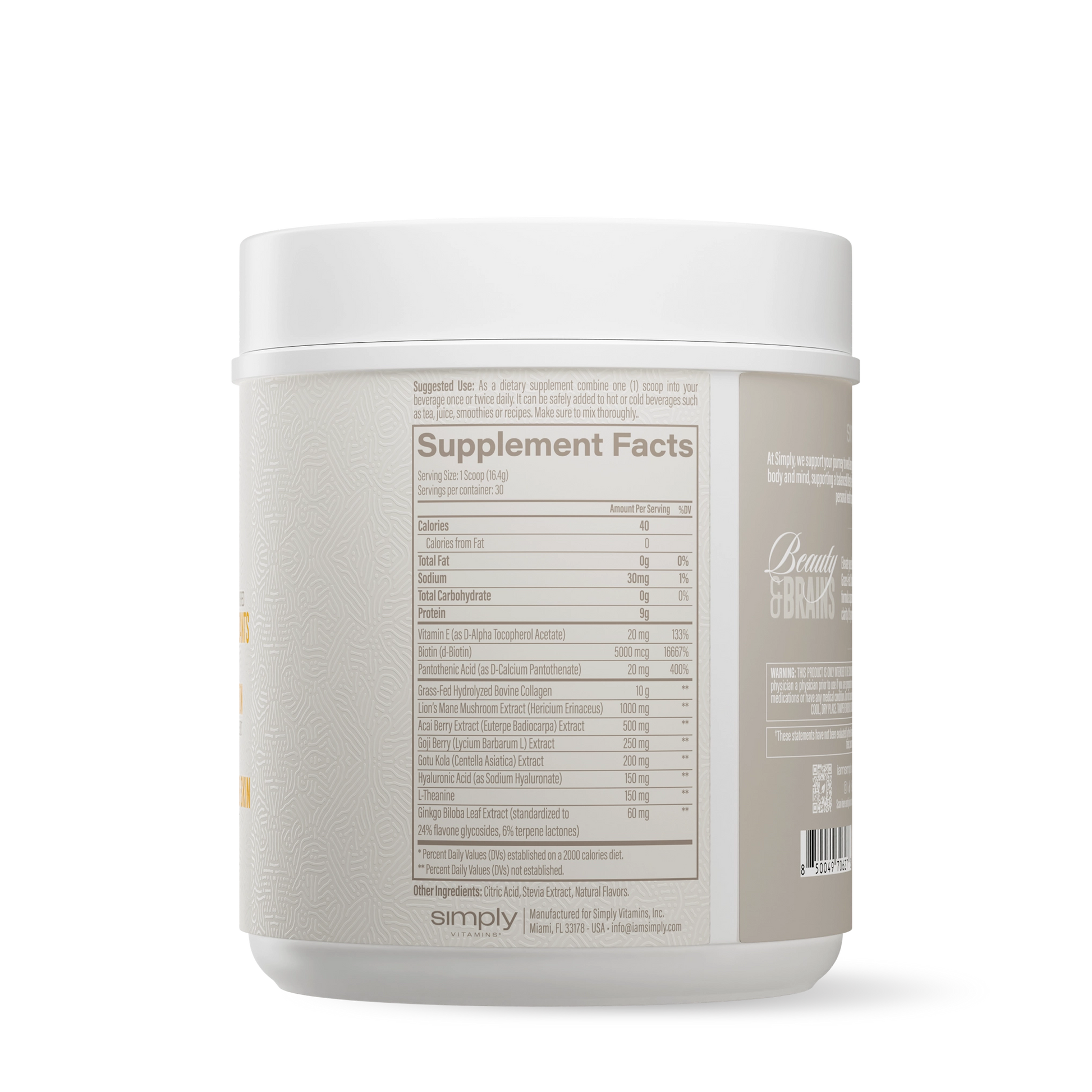Simply Beauty & Brains is your daily wellness ritual for skin, hair, nails, and mental clarity. This powerful blend of collagen peptides and brain-boosting antioxidants promotes radiant beauty and cognitive sharpness, so you can look and feel your best—inside and out.